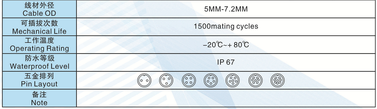 線材外徑(Cable  OD):5.0MM-7.2MM