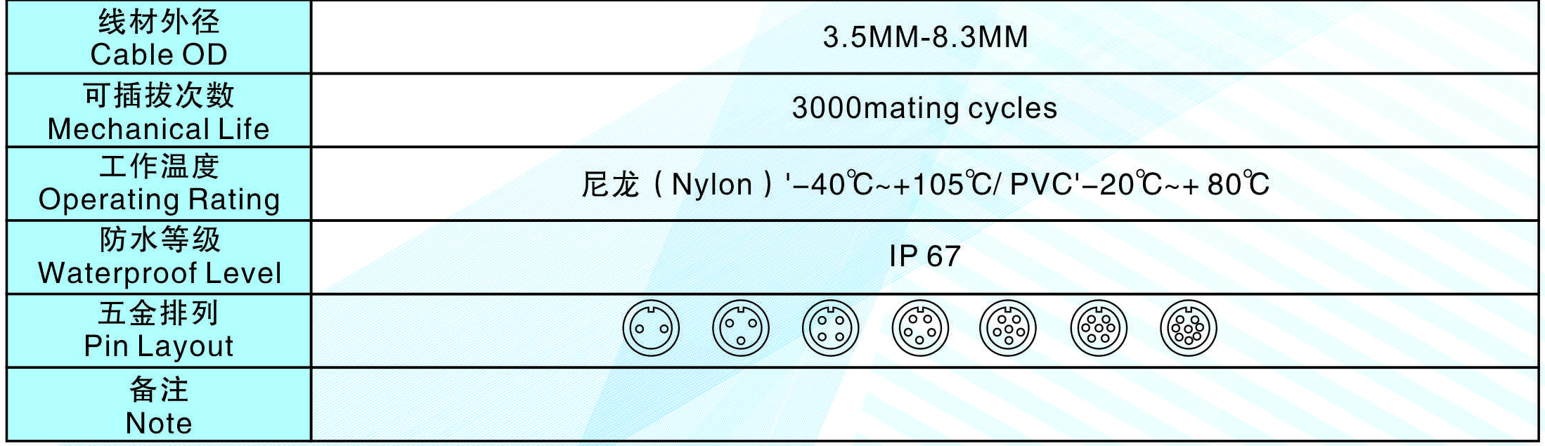線材外徑(Cable  OD):3.5MM-8.3MM