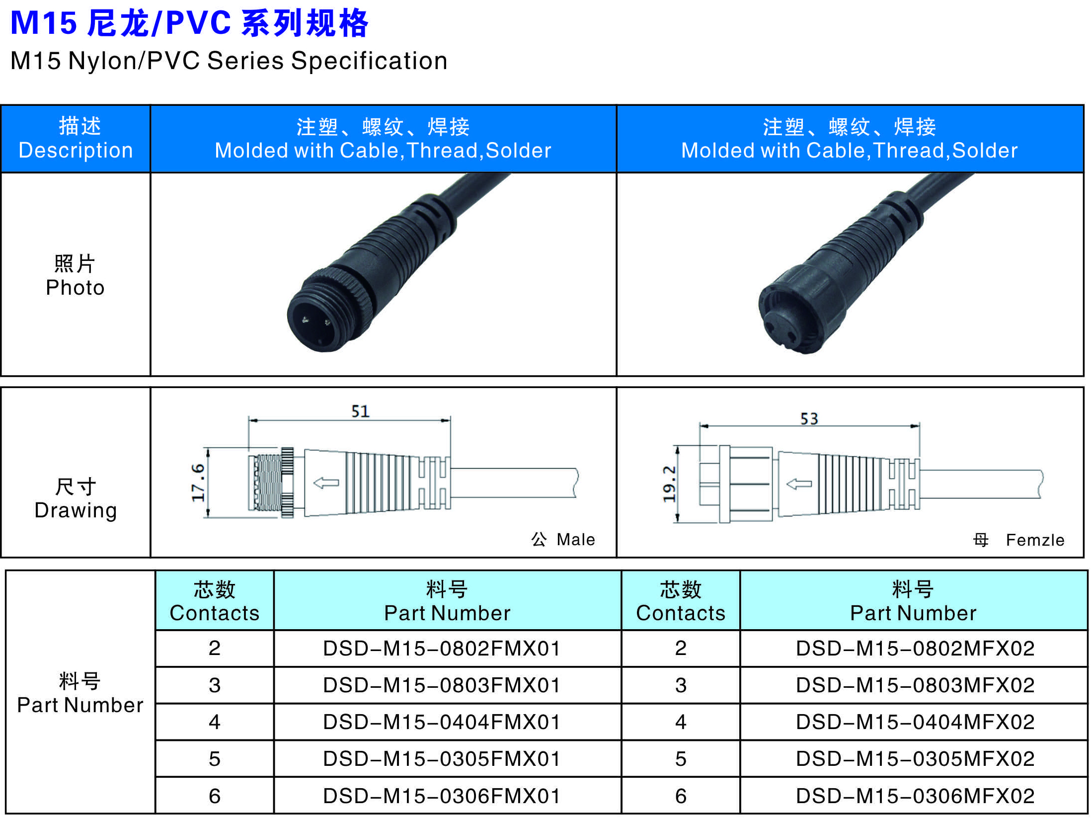 芯數(Contacts Number): 2 - 6芯