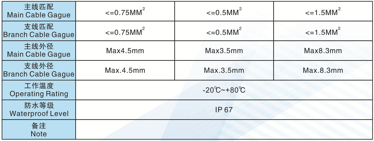 支線匹配(Branch Cable Gague): <= 0.75MM2 <=0.5MM2 <=1.5MM2